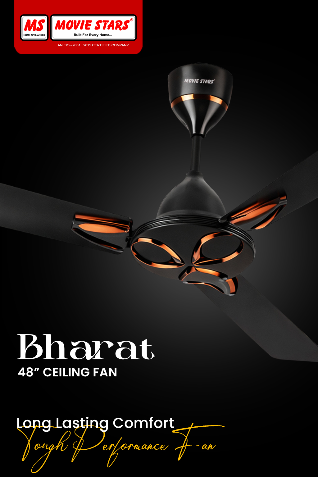 Bharat 48″ (1200mm) (Copper) Ceiling Fan (Metallic Antidust Series) – High Air Delivery, Energy Efficient