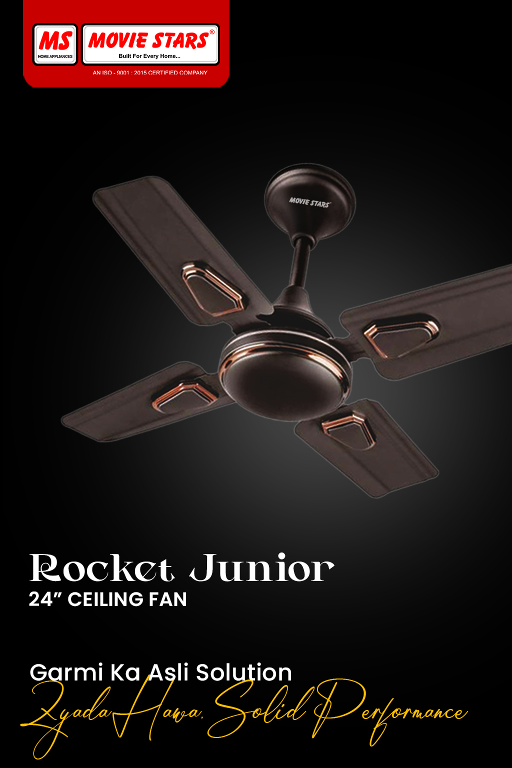 Built with Copper technology, the Rocket Junior ceiling fan consumes less power while delivering high performance, helping you reduce electricity costs without compromising on cooling. Its durable construction ensures long-lasting reliability, backed by a 24-month warranty for peace of mind.